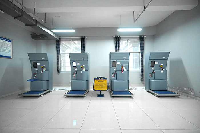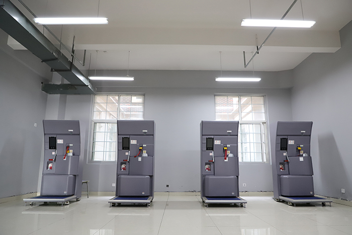 空乘舱门操作体验区。占地面积约62平,设施设备价值454650元,使我们校企合作单位泛美星城公司自主研发设计的,可容纳20名学生进行教学实训,主要适用于空中乘务专业和空中安全保卫专业学生培训考证。