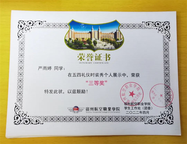 当在采访中问到学校的生活怎么样时,她微笑着说:“我喜欢我的大学生活忙碌而充实,我也希望我的大学是在生活中学习,在学习中生活的状态。让自己在宿航能不断提高个人素质修养、提升人际沟通能力、考取专业技能证书,能够贴上更多的塑造自己的标签。”
