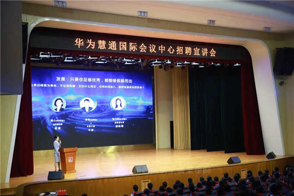 招聘会伊始,华为慧通国际会议中心相关负责人首先介绍了公司的业务范畴、文化价值观、部门职责以及员工工作环境、详细的薪资福利等,并详细解答了同学们的疑问。