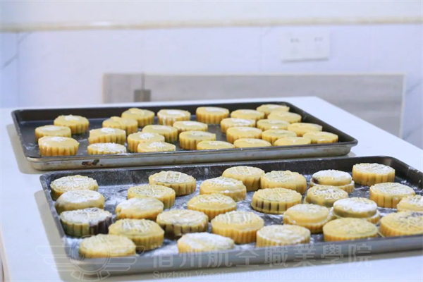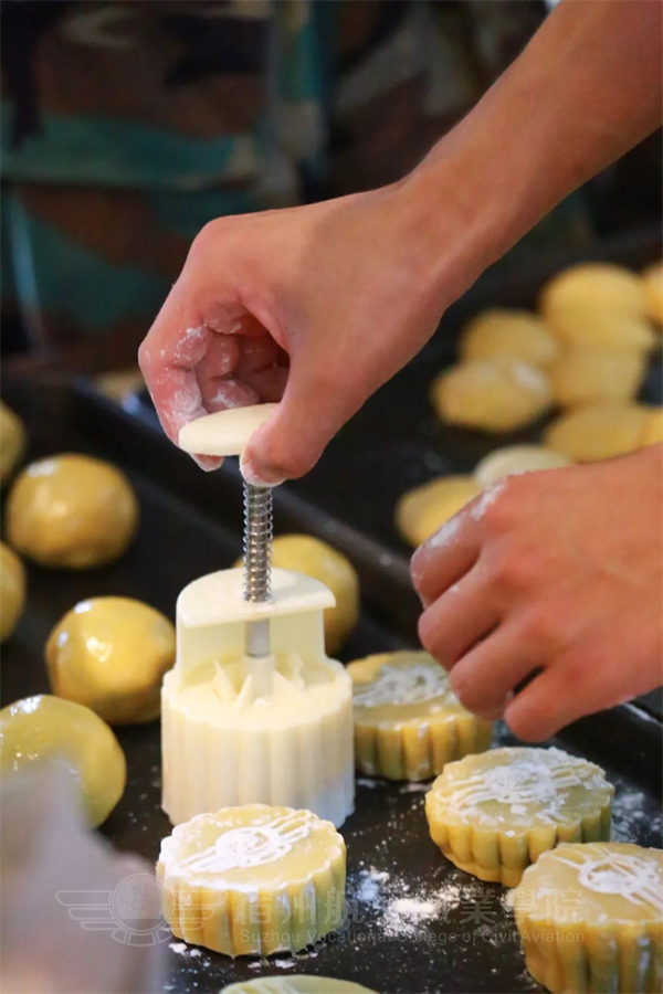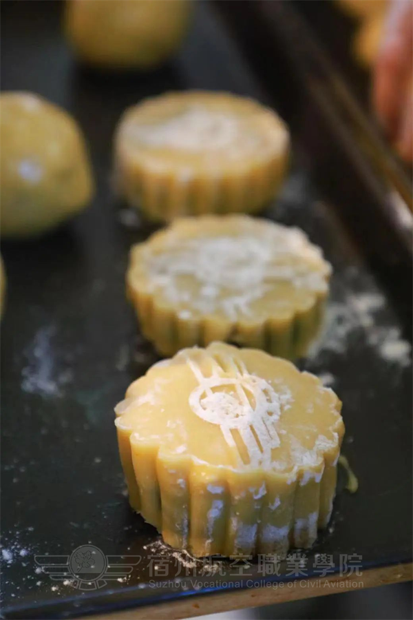 宿航学子们尝试趣味十足的“自家制”,一起亲密互动,互相切磋。揉制面团、包入馅料、按压成型……一个个宿航定制月饼新鲜出炉。