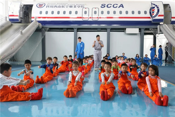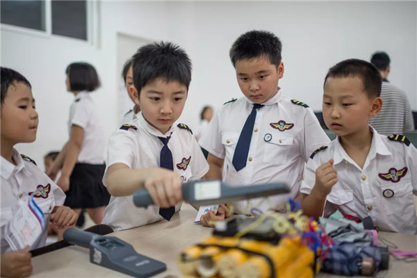 水上迫降训练场、出口训练器、全自动陆地撤离舱、波音737-300实体飞机、值机大厅、安检实训教室等总投资3亿元的专业的硬件设施,为同学们提供真实的职业体验奠定了不可复制的硬件基础。“现在的小孩基本上很多都坐过飞机,可他们却不知道通过民航运输手段,将他们从成都送到北京到底要经历多少个环节,需要哪些单位来保障。”李赟说道,“在这里,同学们可以作为小小值机员、小小安检员,真实地体验值机、安检、客舱服务、机务维修等民航职业,树立对民航行业真实又生动的认知。”李赟还说:“以前很多同学只知道过安检的时候要将包里的电脑、雨伞取出来放旁边,打火机不能带上飞机,可是却不知道为什么,通过真实体验了小小安检员之后,这些问题大家都知其然还知其所以然了。”不难看出,通过这样的研学课程,未来旅客的素质必然会大幅提高。