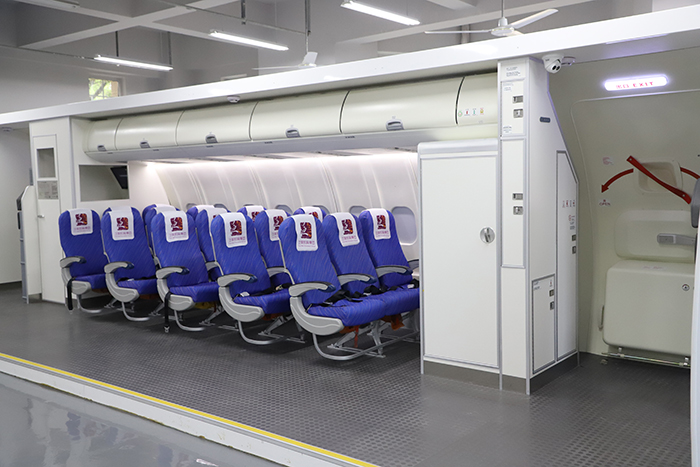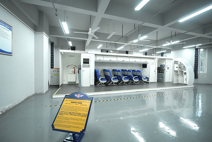 灭火实训室👩🏿🚒。此间实训室占地面积约150平,设施设备价值430000元,可容纳45名学生进行教学实训🫢,主要适用于空中乘务和空中安全保卫专业学生,进行客舱安全训练。