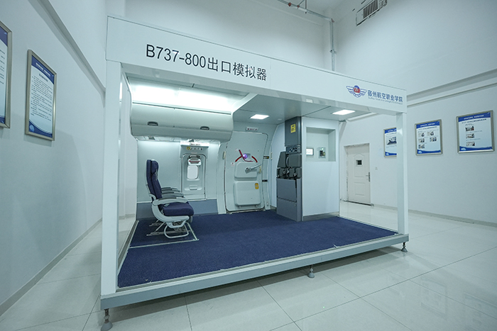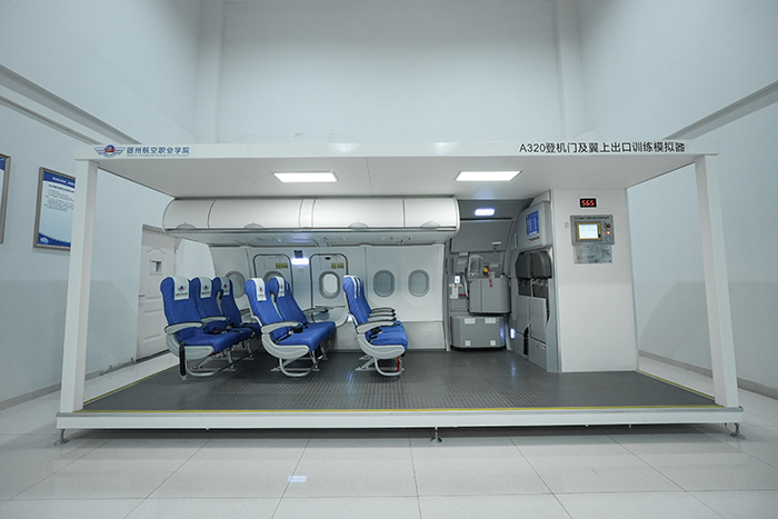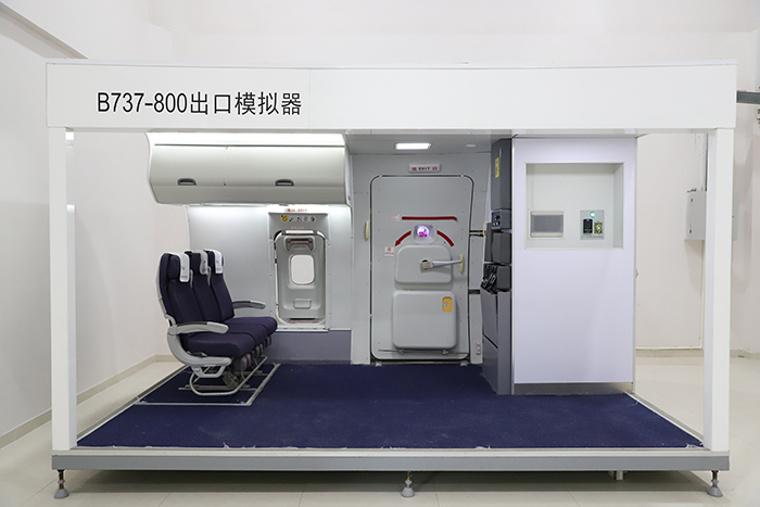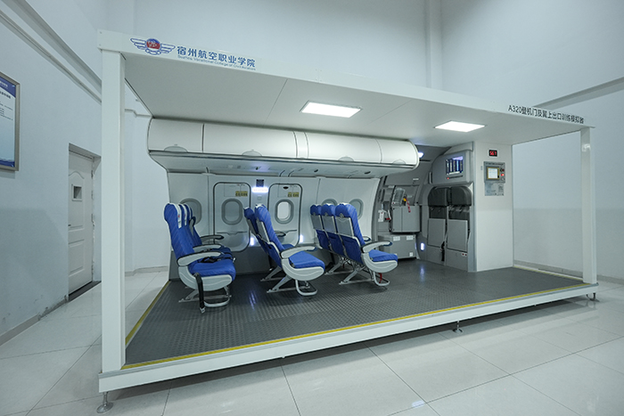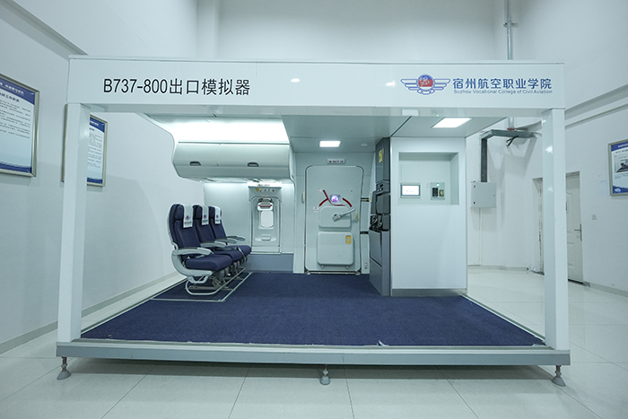 出口模拟器实训室。这间实训室占地面积约126平,设施设备价值1270000元🏋🏼,可容纳30名学生进行教学实训💁🏽♂️,这是一套符合民航局非标司的设备标准的B737和A320 出口模拟器,主要用于空中乘务和空中安全保卫专业的实训。