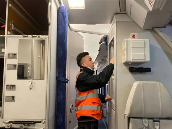 如愿进入东航后,林钰枭经过了入职培训、岗前培训、基本技能培训、OJT培训、初级维修培训等考核,在前期的培训结束后被分到了330小组,作为一名勤务开始跟着师傅在班组内负责航前、航后、短停、周检、排故等工作,在一次次的任务中,不断提高业务能力,工作也越来越得心应手。