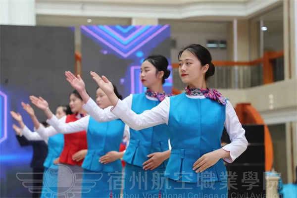 空中乘务专业的学生集体演绎专业技能,准乘务员向现场的师生们展现了客舱安全演示场景,娴熟的动作、良好的职业素养,成功的向我们塑造了一个真正民航员工的形象。