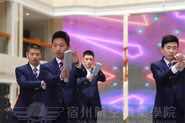 “您好,请出示有效证件,请接收安全检查……”民航安全技术管理专业的同学们整齐划一地演示了民航安检流程和动作。