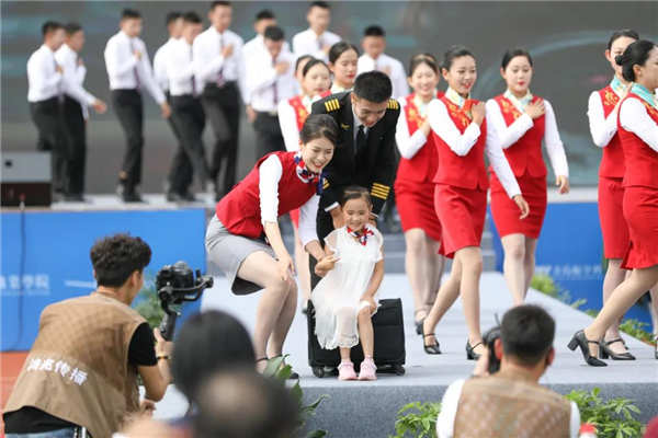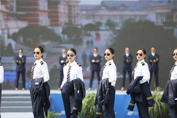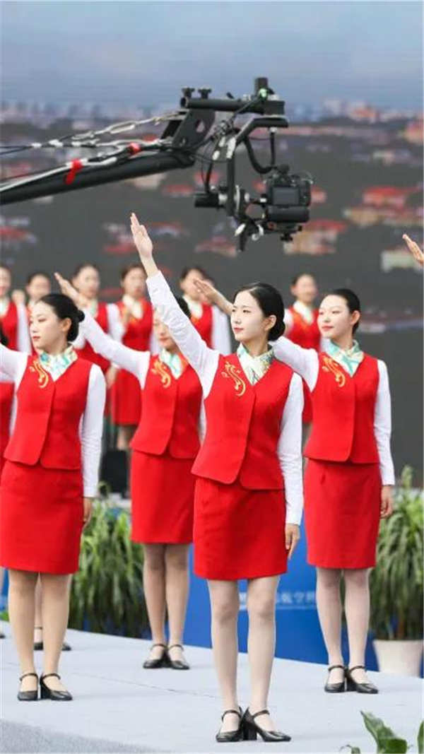 在揭牌仪式现场,青岛北方航空职业学校的学子们带来精彩的航空专业特色节目表演,爵士舞《FLY嗨!》、校园学生服饰展示《多彩青航》、创意说唱《乐享·云端》、航空手语操《爱在蓝天》、飞行T台秀《壮志凌云》。现场其乐融融,赞叹声不绝于耳。
