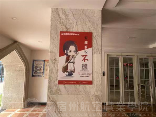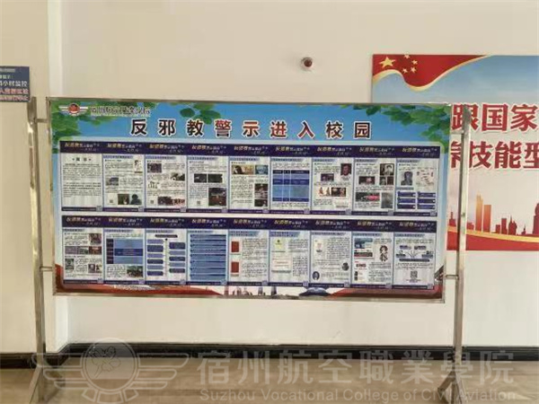 学生工作处(团委)在校园开展“反邪教警示教育进校园”活动宣传。在宿舍楼大厅、教学楼大厅等张贴反邪教宣传海报,并在实训中心的LED大屏幕循环播放警示教育宣传片,使学生认识到邪教伪善面目🤹🏻♂️,呼吁学生自觉抵制邪教,相信科学,树立正确的人生观🐷。