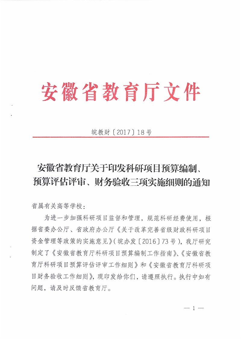 安徽省教育厅关于印发科研项目预算编制、预算评估评审🪄、财务验收三项实施细则的通知