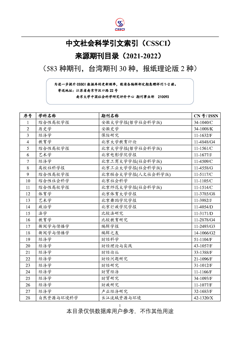 中文社会科学引文索引(CSSCI)