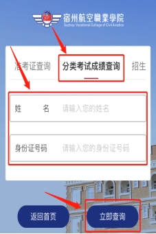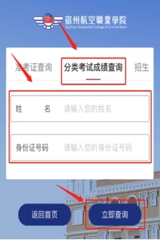 2.进入后点击“分类考试成绩查询”,根据提示填写“姓名”及“身份证号码”,填写正确后,点击下方“立即查询”;