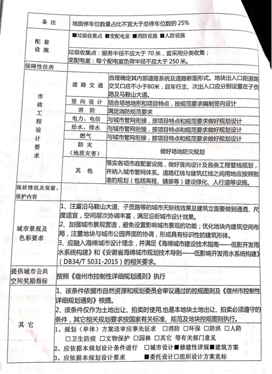 6、停车位、配套服务设施、市政工程、城市景观及色彩等要求详见附件《规划设计条件通知书》(试行)